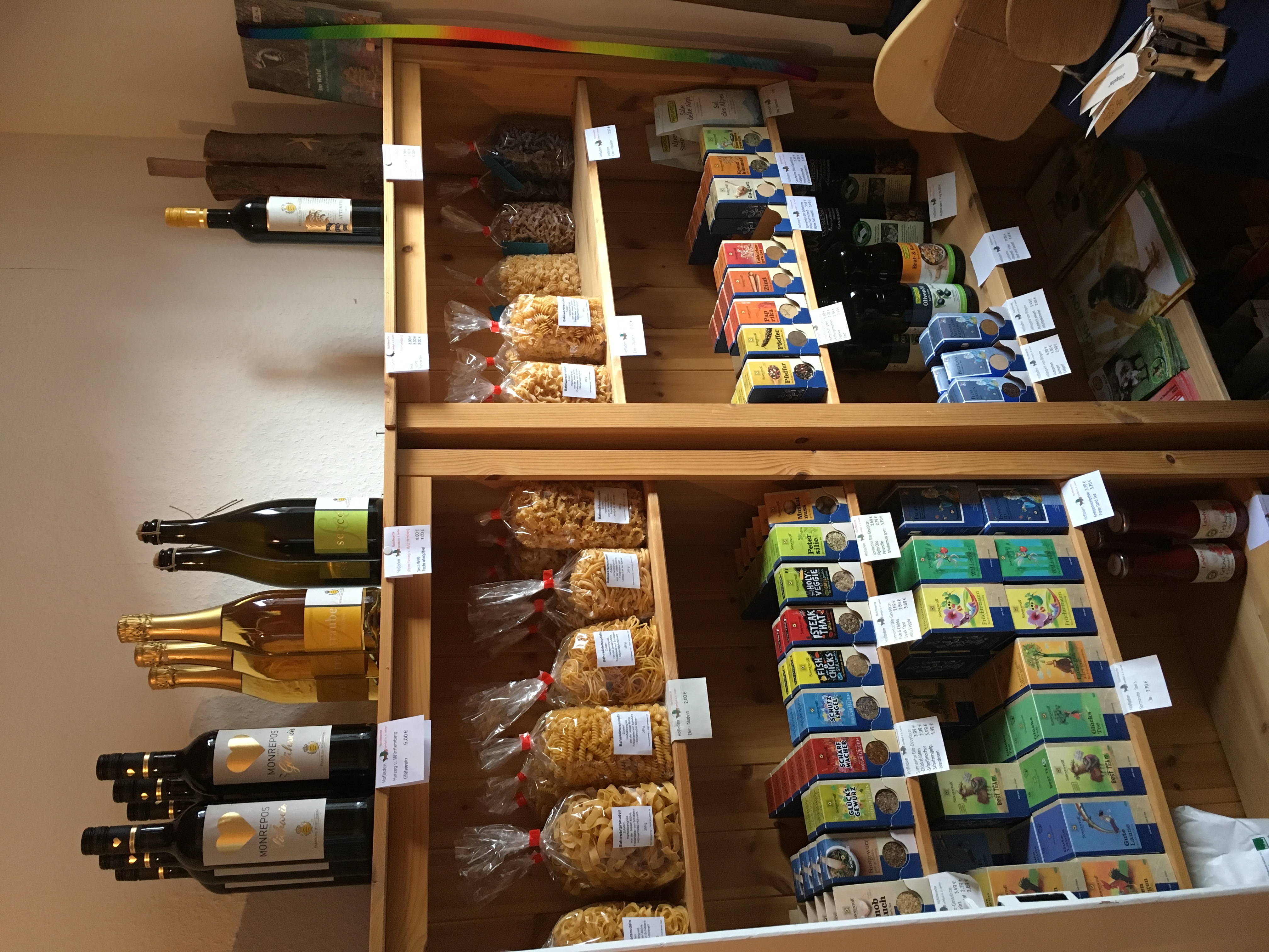 Ein vielfältiges Angebot an nachhaltigen Naturkostwaren, hofeigenen Produkten, Naturdekorationsmaterial und netten Handarbeiten finden Sie in unserem Selbstbedienungs-Hofladen im Haupthaus.