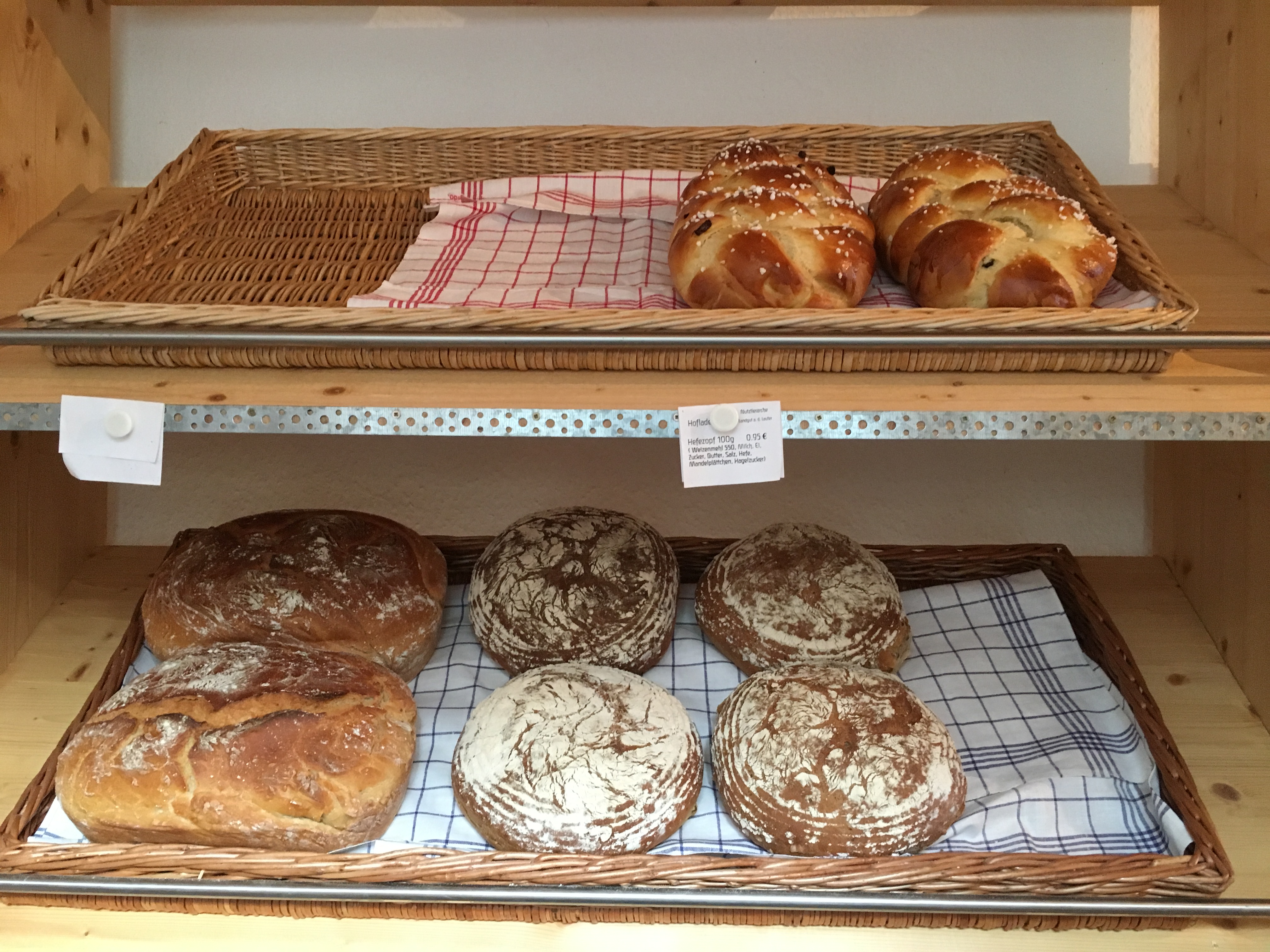 Aus feinstem Dinkelmehl entsteht nach alter handwerklicher Kunst auch auf unserem Hof das Urprodukt der Landwirtschaft: Brot. Im Holzofen gebacken erhält unser Brot einen ganz besonders natürlichen und ursprünglichen Geschmack. Backtag ist jeden Freitag. So landet unser Brot auch immer frisch zur Öffnungszeit im Hofladen.