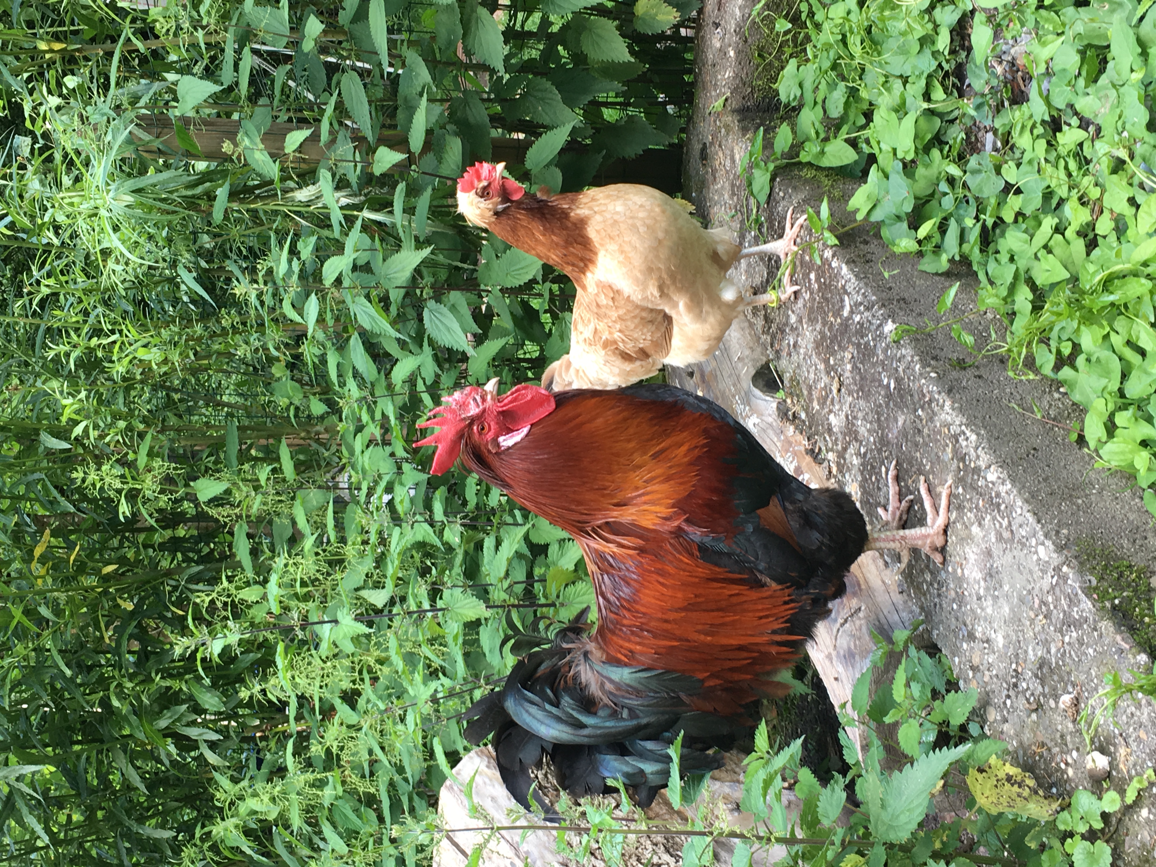 Unsere Hühnerschar besteht neben gewöhnlichen braunen Legehennen auch aus zwei alten vom aussterben bedrohten Hühnerrassen: Sulmtaler Hühner, eine alte österreichische Hühnerrasse, die früher gerne an den deutschen Fürstenhöfen verspeist wurde und Sundheimer Hühner, eine ebenfalls sehr alte Hühnerrasse aus Baden, die neben einer guten Legeleistung auch ein gutes Schlachtgewicht auf die Waage bringt. Unsere Hühner leben in Freilandhaltung, mit Hahn. Jeden Tag geht es raus in den Auslauf, egal zu welcher Jahreszeit und zu welchem Wetter. Die Nacht verbringen die Hühner sicher im großzügigen Stall. Hier gibt es für jedes Huhn Sitzstangen zum Schlafen und gemütliche Nester zum Eierlegen. Unser gentechnikfreies Futter besteht aus verschiedenen Getreidesorten, Mineralstoffen und Vitaminen. So sind unsere Hühner immer rundum versorgt mit Allem was sie brauchen. Eier werden täglich frisch gesammelt und im Laden oder im Automaten verkauft. Ein Teil der Eier wird zu verschiedenen Nudelsorten verarbeitet. Jedes Jahr werden auch Suppenhühner geschlachtet, die auf Vorbestellung abgeholt werden können.